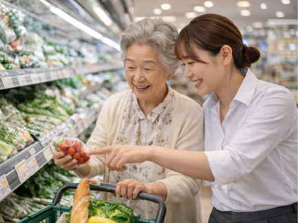 ご家族の介助のない方へ、定期的なご連絡(ハローコール+記録簿)や声かけ、通院やお買い物などの付き添いをサポートします。